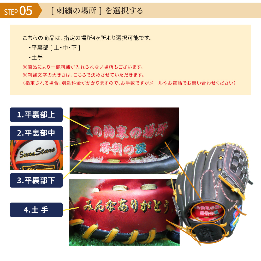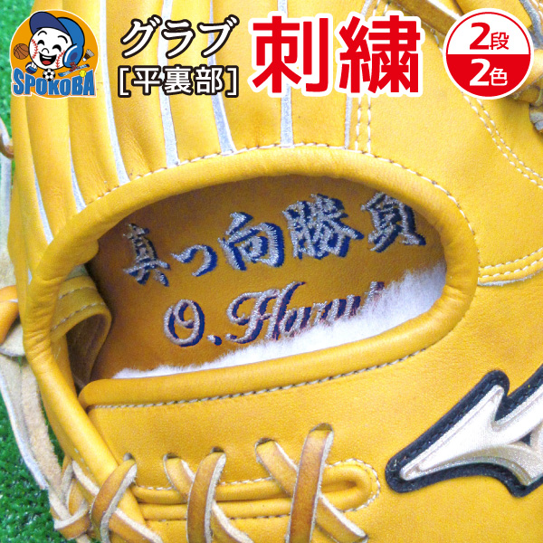 グラブ刺繍 平裏部 刺繍 2段2色 影 縁 【刺繍加工】 グローブ刺繍 エンブロイダリー ししゅう オリジナル オーダーメイド 選べる フォント カラー マルチカラー 持込 同時購入 加工代金  (spokoba-shisyu04)