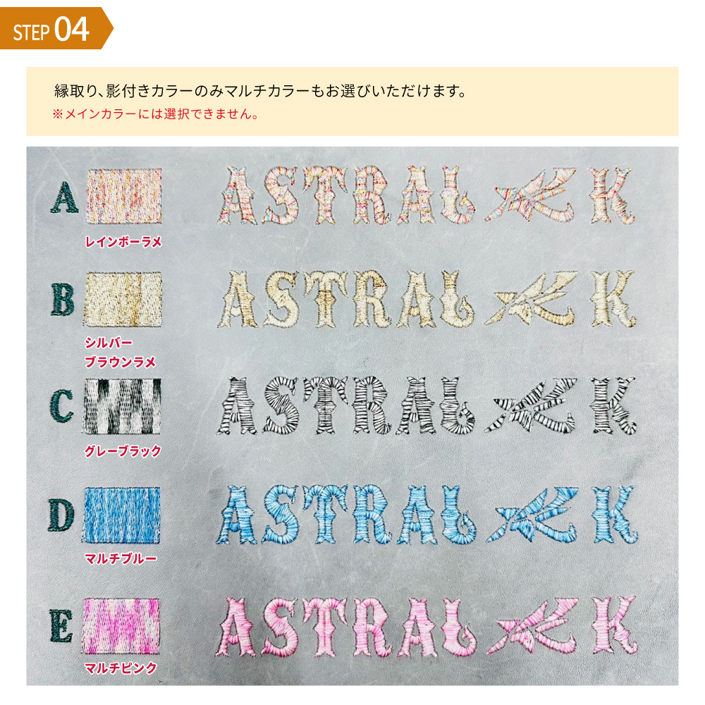 グラブ刺繍 平裏部 刺繍 2段2色 影 縁 【刺繍加工】