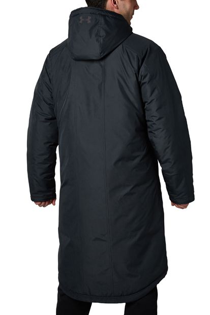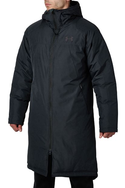 アンダーアーマー(UNDER ARMOUR) コート UA INSULATED LONG COAT 品番:1305629 カラー:BLK/BLK/GPH(001) サイズ:SM・MD・LG・XL・XXL・3XL 素材:ポリエステル100% ・水分コントロール:汗による水分を素早く吸収、外部へ発散し、アスリートの身体を常にドライに保つ。 ・4ウェイストレッチ:4方向へのストレッチ性に優れ、あらゆる動きがスムーズに。 ・はっ水:撥水機能のある生地が、雨や水から身体をドライに保つ。 ・インフラレッド:裏地にセラミックプリントを施すことで蓄熱効果を高める。 ・ストーム:撥水加工により悪天候でもドライで快適。 ・ルーズ:ゆったりと着用するタイプ。着心地に対するストレスを軽減することで、長時間におよぶトレーニングなどにふさわしい、快適なリラックス感を実現。 ・コールドギア:冬等の寒冷時に最適な防寒素材「コールドギア」