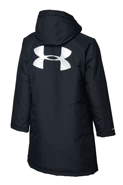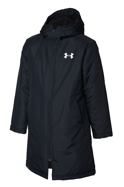 アンダーアーマー(UNDER ARMOUR) ジュニアロングコート UA BOYS INSULATED LONG COAT 品番:1305902 カラー:BLK/BLK/SIL(001) サイズ:YSM(130)、YMD(140)、YLG(150)、YXL(160) 素材:ポリエステル100% ・悪天候の中でも快適な撥水加工を施したモデル。 ・非常に軽量な中綿を使用。 ・はっ水:撥水機能のある生地が、雨や水から身体をドライに保つ。 ・ストーム:撥水加工により悪天候でもドライで快適。 ・ルーズ:ゆったりと着用するタイプ。着心地に対するストレスを軽減することで、長時間におよぶトレーニングなどにふさわしい、快適なリラックス感を実現。 ・コールドギア:冬等の寒冷時に最適な防寒素材「コールドギア」