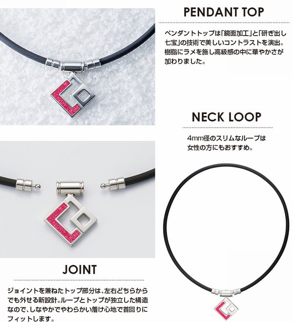 コラントッテ(Colantotte) TAO ネックレス AURA 品番:ABAPH カラー:レッドラメ サイズ:M(43cm)L(47cm)LL(51cm) 材質:(本体)樹脂コーティング磁石(ジョイント部分)ステンレス(SUS316L)エポキシ樹脂POM 磁石:樹脂コーティング磁石55mTを10mm間隔でN極S極交互配列 医療機器認証番号:221AGBZX00065000