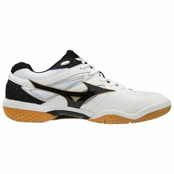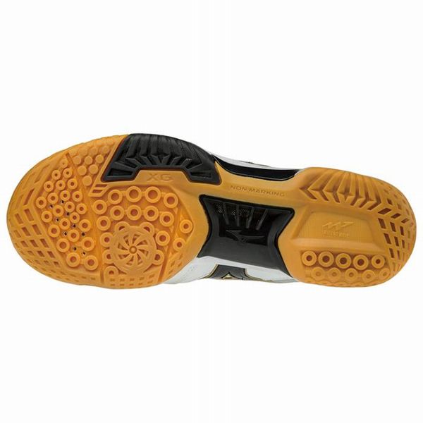 ミズノ(MIZUNO) バドミントンシューズ ウェーブファングXT3 品番:71GA185009 サイズ:23.0〜28.5(cm) カラー:09:ホワイト×ブラック×ゴールド 甲材:人工皮革・合成繊維 底材:合成底 質量:約310g(27.0cm片方) 足幅:3E 原産国:ベトナム製 日本バドミントン協会審査合格品