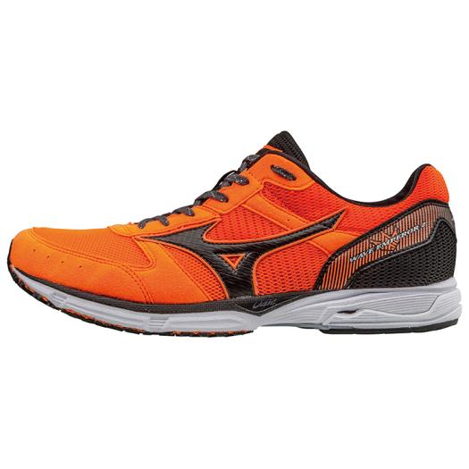 品番:J1GA1776 カラー:09(オレンジ×ブラック) サイズ:24.5〜28.5cm 甲材:合成繊維、人工皮革 底材:合成底 質量:約190g(27.0cm片方) 詳細:アナトミカルカップインソール(取り外し可) 原産国:中国・ベトナム製