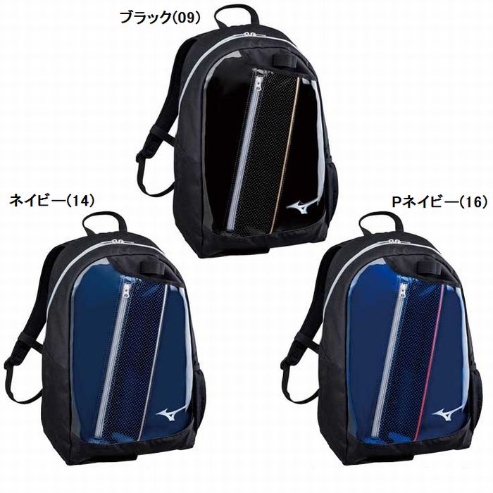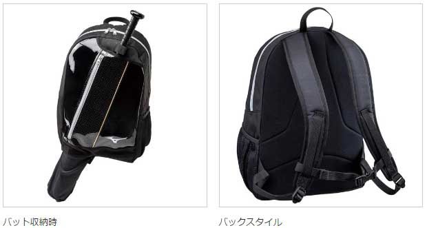 ミズノ(MIZUNO) 少年用デイパック カラー:ブラック(09)、ネイビー(14)、パステルネイビー(16) サイズ:L30×W18×H43 容量:約23L 素材:ポリエステル(裏加工PU)×合成皮革(PUエナメル) バット収納式 原産国:ベトナム製