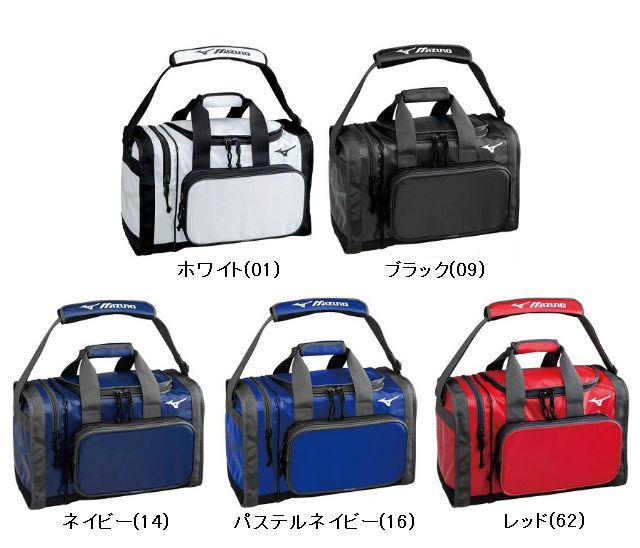 ミズノ(MIZUNO) セカンドバッグ 品番:1FJD6022 カラー:ホワイト(01)、ブラック(09)、ネイビー(14) パステルネイビー(16)、レッド(62) 素材:ターポリン(TPU)×ポリエステル(裏加工PU) サイズ:L47×W24×H30 容量:約40L フロントポケット取り外し式(縦17×横32cm) 原産国:中国製