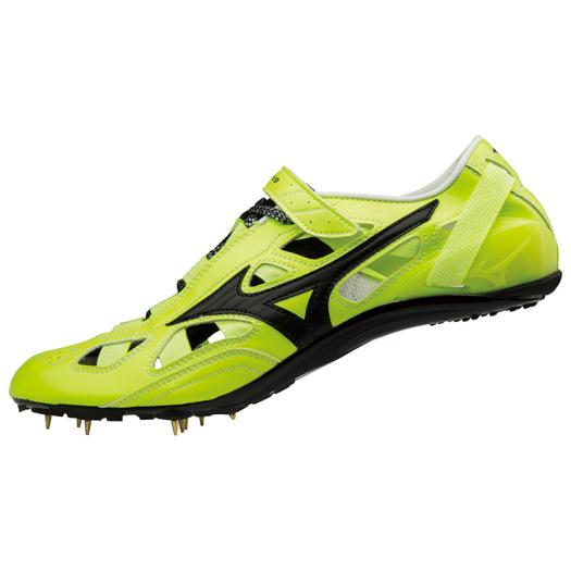 品番:U1GA1801 カラー:09(イエロー×ブラック) サイズ:24.0〜28.5cm 質量:140g(26.0cm片方) 甲材:合成繊維、人工皮革 底材:合成底 スパイクピン:固定式(7mm・3mm) 競技種目:100〜400m、ハードル(オールウェザートラック専用) 付属品:シューズ袋(日本製)付 原産国:日本製