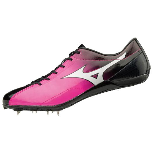 品番:U1GA1815 カラー:60(ピンク×ホワイト×ブラック) サイズ:22.0〜29.0cm 質量:175g(26.0cm片方) 甲材:合成繊維、人工皮革 底材:合成底 スパイクピン:8ZA303(8mm)、固定式(6mm・4mm) レンチ:8ZA309 競技種目:100〜400m、ハードル(オールウェザートラック専用) 付属品:シューズ袋(ベトナム製)付 原産国:ベトナム製