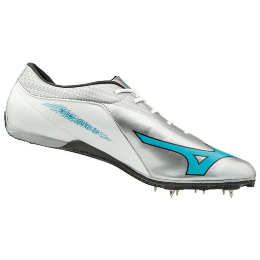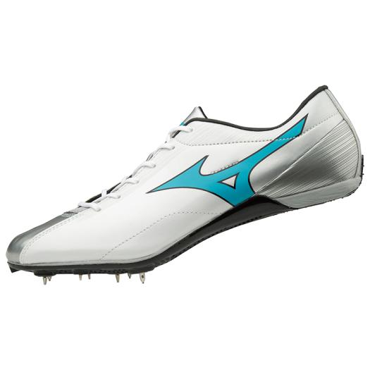 品番:U1GA1815 カラー:25(ホワイト×スカイブルー×シルバー) サイズ:22.0〜29.0cm 質量:175g(26.0cm片方) 甲材:合成繊維、人工皮革 底材:合成底 スパイクピン:8ZA303(8mm)、固定式(6mm・4mm) レンチ:8ZA309 競技種目:100〜400m、ハードル(オールウェザートラック専用) 付属品:シューズ袋(ベトナム製)付 原産国:ベトナム製
