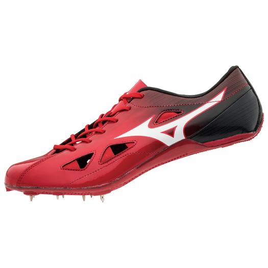品番:U1GA1812 カラー:01(レッド×ホワイト×ブラック) サイズ:23.0〜30.0cm 質量:170g(26.0cm片方) 甲材:合成繊維、人工皮革 底材:合成底 スパイクピン:8ZA303(8mm)、固定式(6mm・4mm) レンチ:8ZA309 競技種目:100〜400m、ハードル(オールウェザートラック専用) 付属品:シューズ袋(ベトナム製)付 原産国:ベトナム製
