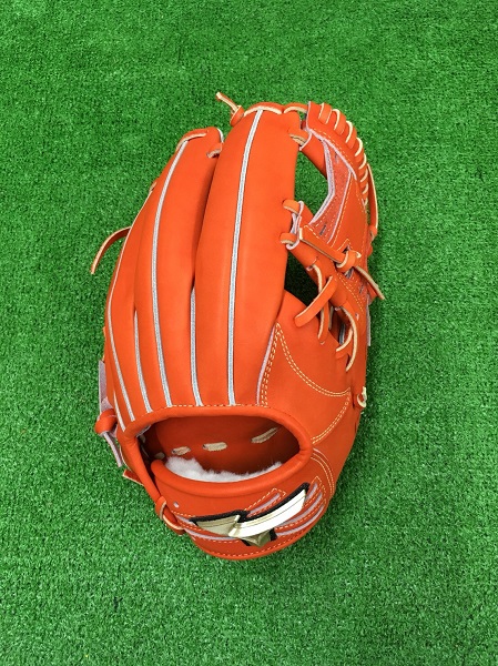 品番:1AJGH97003 カラー:52(スプレンディッドオレンジ) 素材:クレストハイドレザー(天然皮革 牛革) サイズ:9 ポジション:内野手用坂本型 左右:右投げ用 付属品:専用袋付き 原産国:日本製
