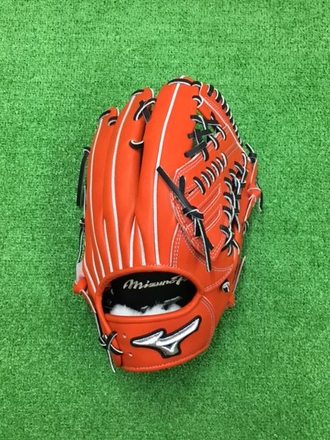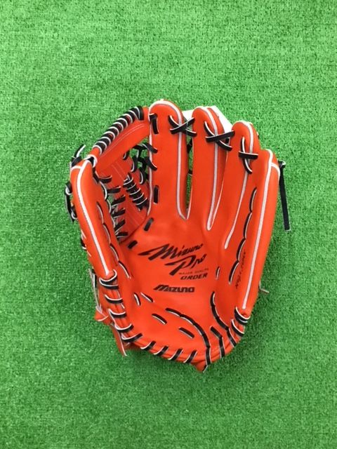 ミズノ(MIZUNO) BSSショップ限定 ミズノプロ 硬式用オーダーグラブ 外野手用 イチローモデル カラー:52(スプレンディッドオレンジ) 素材:プレキシーキップ(天然皮革 牛革) サイズ:18N ポジション:外野手用イチロー型 左右:右投げ用 ウェブ:ショックアブソーバー24 バックスタイル:ノーマル ラベル:プラチナロゴ 平裏部:ミズノプロ刺繍入り 付属品:専用袋付き 原産国:日本製
