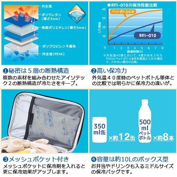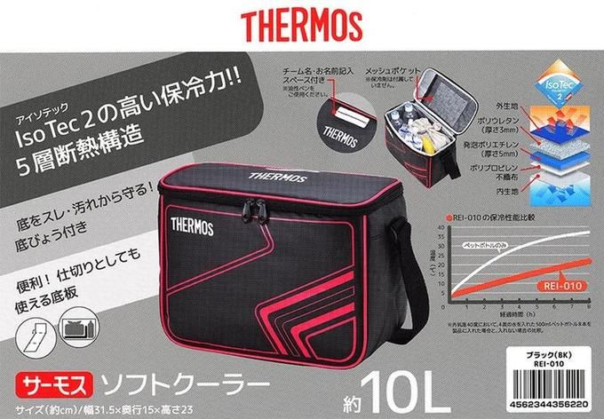 サーモス(THERMOS) クーラーバッグ ソフトクーラー 品番:REI010 カラー:BK(ブラック) サイズ:10L(10リットル) サイズ:幅31.5×奥行15×高さ23cm 本体重量:0.4(kg)