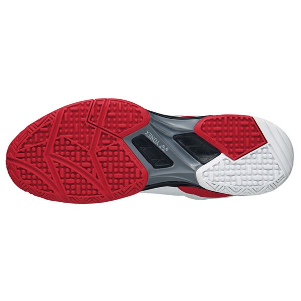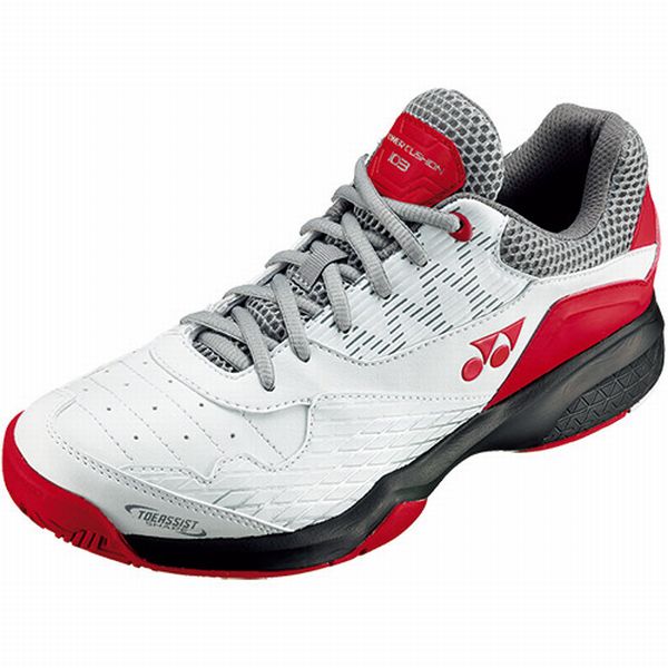 ヨネックス(YONEX) テニスシューズ パワークッション103 品番:SHT103 カラー(114)ホワイト/レッド サイズ:22.0〜28.0cm 素材 アッパー:人工皮革 ミッドソール:合成樹脂 アウトソール:ゴム底 仕様:クレー/砂入り人工芝コート 特徴:ローカット、3E 生産国:インドネシア