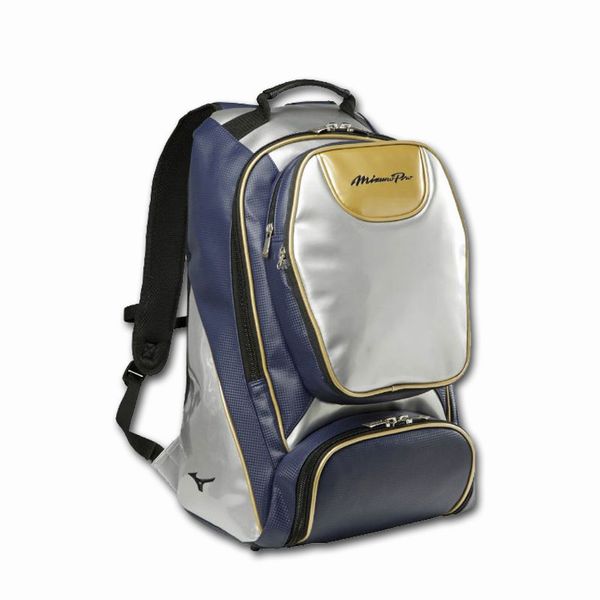ミズノ(MIZUNO) ミズノプロ バックパック 品番:1FJD8904 カラー:シルバー×Pネイビー(91) 容量:約40L 素材:人工皮革(PU)、エナメル(PU) 生産国:中国製