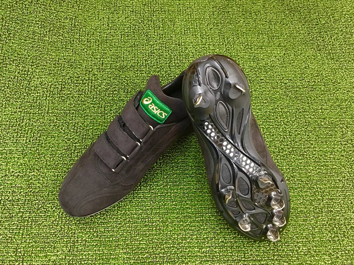 品番:GJLMBZ カラー:9090(ブラック×ブラック) サイズ:25.0cm〜30.0cm アッパー素材:人工皮革(スエード) アウター素材:合成樹脂底 スパイク:金属製・固定式 カット:ローカット ベロタイプ:立ちベロ 付属品:ゴールドステージ専用シューズ袋付 生産国:日本製