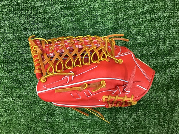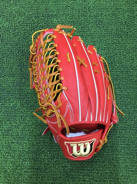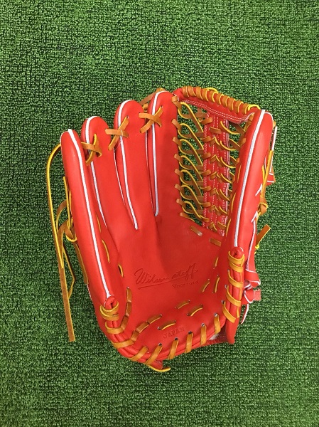 品番:WTAHWR8WG カラー:Eオレンジ(22) ポジション:外野手用 サイズ:12 左右:左投げ 表革素材:プロストック ステアレザー 裏革素材:共革 芯材:親指/化繊+ウールH、小指/化繊+ウールH、指/化繊 ウェブ:GT 特別仕様:逆とじ、背面紐、小指2本入れ対応 製造国:日本製