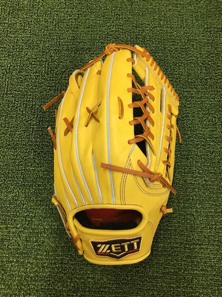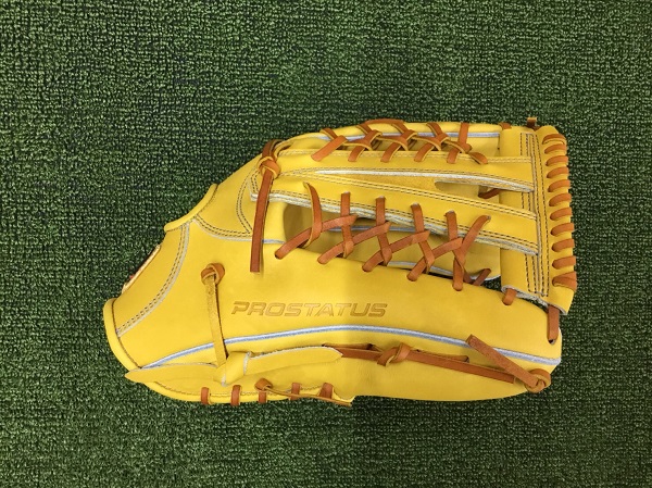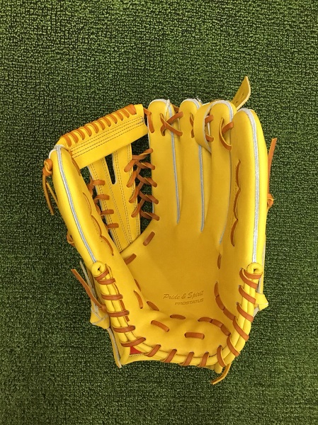 品番:BPROG67 カラー:5436(Tイエロー×オーク) 素材:表/天然皮革製(プロステイタスレザー)、平裏/天然皮革製(プロステイタスレザー) サイズ:8 ポジション:二塁手・遊撃手用(右投げ用) 詳細:小指2本入れ設計 付属品:専用グラブ袋付き 原産国:日本製