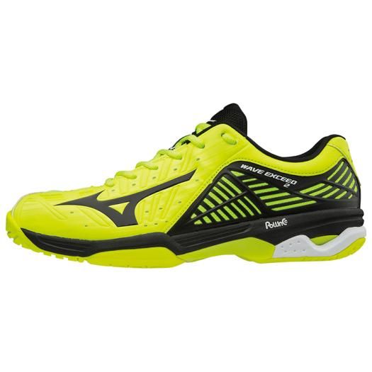 ミズノ(MIZUNO) テニスシューズ ウエーブエクシード 2 OC 品番:61GB181209 カラー:09:イエロー×ブラック×ホワイト サイズ:22.5〜28.5cm 甲材:人工皮革・合成繊維 底材:合成底 質量:約295g(27.0cm片方) 対象/目的:砂入り人工芝・クレーコート用 インソール:カップインソール(取り外し可) ウィズ:2E相当の方向け 原産国:ベトナム製