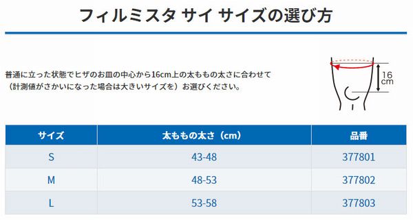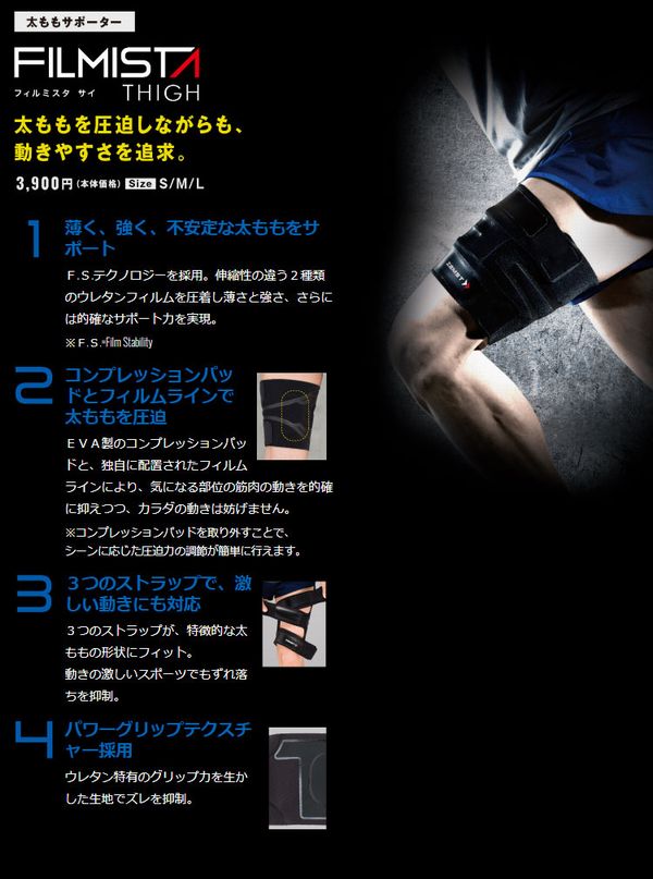 ザムスト(ZAMST) フィルミスタ サイ FILMISTA THIGH 太もも用サポーター 品番:377801(S)、377802(M)、377803(L) サイズ(太ももの太さ):S(43〜48cm)、M(48〜53cm)、L(53〜58cm)
