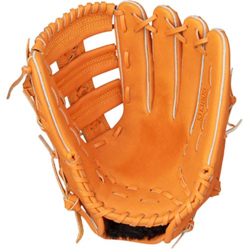 品番:1313805 カラー:DOR:ディープオレンジ(109) 素材:天然皮革(ステア) 左右:右投用 サイズ:30.5cm(人差し指の先端からグラブの土手部分の先端まで) 特徴 ・しっとりソフトなステアを使用。 ・確実な捕球を可能に。 生産国:タイ
