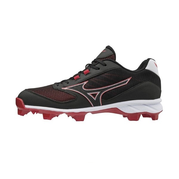 品番:11GP1852 カラー:62(ブラック×レッド) サイズ:25.5〜28.5cm 質量:約315g(21.0cm片方) 本体:合成繊維、人工皮革 アウトソール:合成底 スパイク:合成樹脂 原産国:カンボジア製