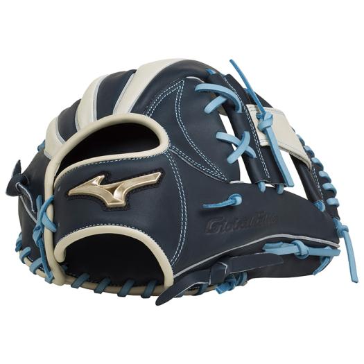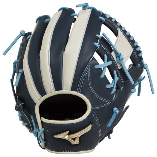 品番:1AJGS19303 カラー:2903(Dブルー×シルバー) 素材:受球面・背面:リンバーフィノレザーR(天然皮革:牛革) ポジション:NS型 サイズ:9 左右:右投用 付属品:専用グラブ袋付 原産国:フィリピン製