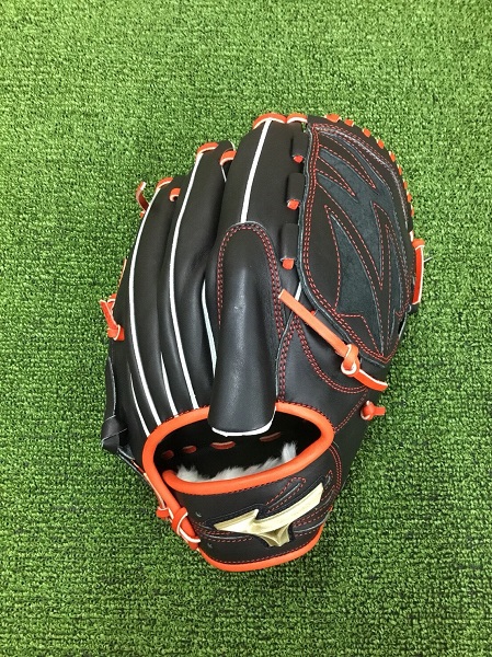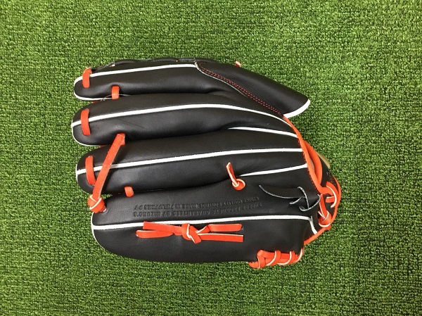 品番:1AJGRA1443 カラー:ブラック(09) バックスタイル:IBE ヘリ革:Sオレンジ 紐革:Sオレンジ 縫糸:赤 素材:Moderender Leather R サイズ:11 ポジション:外野手用(前田型10mm小) 左右:右投げ用 付属品:専用袋付き 原産国:フィリピン製