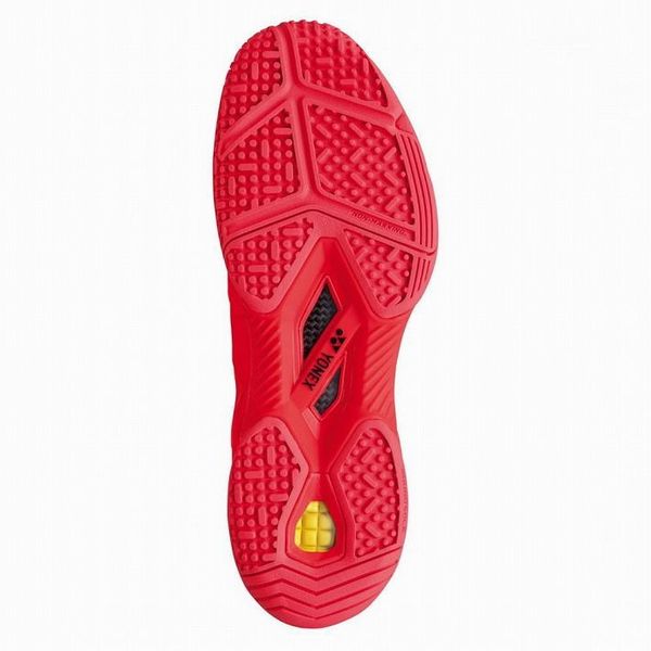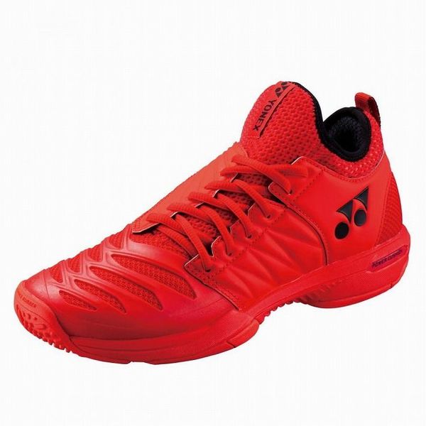 ヨネックス(YONEX) テニスシューズ パワークッションフュージョンレブ3MGC 品番:SHTF3MGC カラー:レッド(001) サイズ:22.0〜29.0cm 素材:アッパー/合成繊維+合成樹脂、ミッドソール/合成樹脂、アウトソール/ゴム底 仕様:ローカット、3E設計 用途:クレー/砂入り人工芝コート 機能1:パワークッションプラス/ヨネックス独自開発の軽量衝撃吸収材「パワークッション」に弾性のある特殊な樹脂を添加。従来の軽量性は保ちつつ、高い衝撃吸収性(従来比25%アップ)を実現。格子状に「+型」の溝を最適な間隔と深さで配置し、さらなる反発性(従来比12%アップ)を達成しました。 機能2:新設計フレクションアッパー/シューレースを、締め込みの圧力が集中しやすい舟状骨〜楔状骨付近を避けてレイアウトすることで、圧力を足全体に分散させ、包み込まれるようなフィット感を実現しました。 機能3:インナーブーティ構造/中足部からかかと部にかけて、伸縮素材で足を包み込み柔らかなフィット感を実現。 原産国:ベトナム
