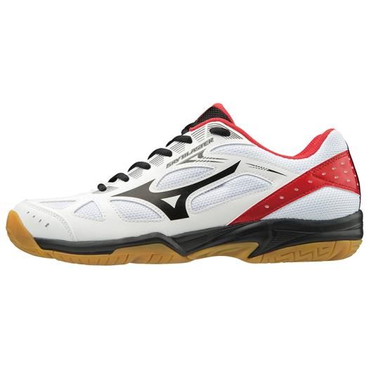 ミズノ(MIZUNO) バドミントンシューズ スカイブラスター 品番:71GA194509 カラー:09:ホワイト×ブラック×レッド サイズ:20.0、21.0、22.0〜28.5cm 素材 甲材:人工皮革・合成繊維 底材:合成底 質量:約300g(27.0cm片方) インソール カップインソール(取り外し可) 足幅:2E相当の方向け 原産国:ベトナム製