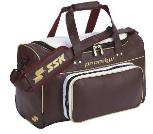 エスエスケイ(SSK)プロエッジ バックパック 品番:EBA4000 カラー:2238:エンジ×ゴールド サイズ 本体:長さ54×高さ33×幅23cm(容量:約51L) 前ポケット:縦18×横26cm 素材:合成皮革(PVC) 仕様 前ポケット脱着式 生産国:中国