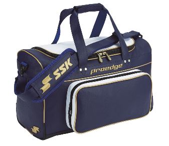 エスエスケイ(SSK)プロエッジ バックパック 品番:EBA4000 カラー:6338:Dブルー×ゴールド サイズ 本体:長さ54×高さ33×幅23cm(容量:約51L) 前ポケット:縦18×横26cm 素材:合成皮革(PVC) 仕様 前ポケット脱着式 生産国:中国
