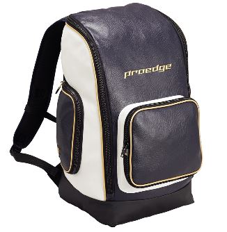 エスエスケイ(SSK)プロエッジ バックパック 品番:EBA1004 カラー:7038:ネイビー×ゴールド サイズ 本体:長さ30×高さ52×幅27cm(容量:約40L) 前ポケット:縦19×横24cm 素材:合成皮革(PVC) 仕様 前ポケット脱着式 シューズ収納 ショルダーベルト部再帰反射テープ付 生産国:中国