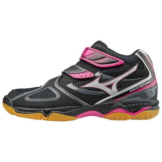 ミズノ(MIZUNO) レディス バレーボールシューズ ウエーブアルテミス3MID 品番:V1GC155803 カラー:03:ブラック×シルバー×ピンク サイズ:22.5〜26.0cm 素材 甲材/合成繊維・人工皮革 底材/合成底 機能 パラレルウエーブ ウィメンズラスト 重量:約250g(24.0cm片方) 原産国:ベトナム製