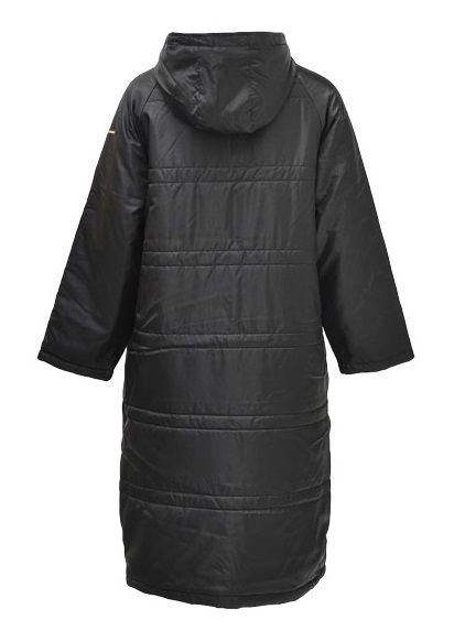 中綿入り、ひざ下丈のロングコート。 寒い時期のレースのアップ前後等に。 野外でのスポーツ観戦・応援に。 手首は2重構造。袖口からの冷たい風の侵入を防ぎます。 男女兼用サイズ 右胸、左肩部にミズノロゴのゴールドプリント。 胸にはゴールドパイピング 内ポケット(1)、ポケット(2)※ポケットは全てファスナーなし