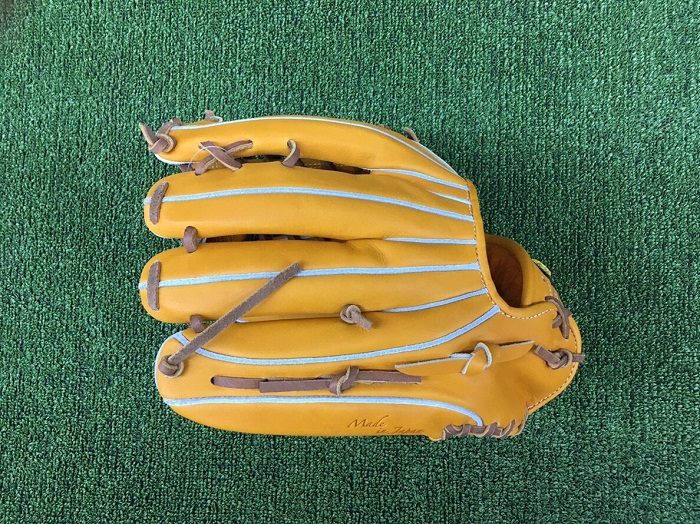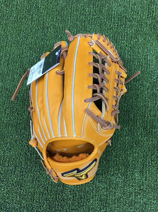 品番:1AJGH97107 カラー:52(オレンジ) 素材:天然皮革(牛革) サイズ:17N(5mm小さい) ポジション:外野手用(岡島モデル) 左右:右投げ用 付属品:BSSショップ限定専用袋付き