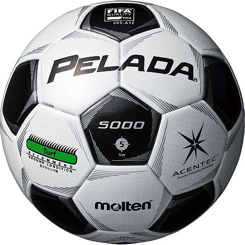 モルテン(molten) サッカーボール5号球 芝用 ペレーダ5000 品番:F5P5000 カラー:ホワイト×ブラック サイズ:5号球 素材:アセンテック・人工皮革 国際公認球 検定球 芝用 ラテックスチューブ 国際公認球、検定球 タイ製 *このボールはたたんだ状態で保管・輸送をしますと、空気を入れた後も表皮にシワが残ります。空気を入れた状態で保管・輸送をお願いします。