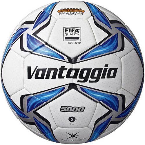 モルテン(molten) サッカーボール5号球 ヴァンタッジオ5000 土用 品番:F5V5001 カラー:スノーホワイト×ブルー 素材:アセンティック・人工皮革 サイズ:5号球 土グラウンド用 ブチルチューブ 検定球 国際公認球 特許登録済