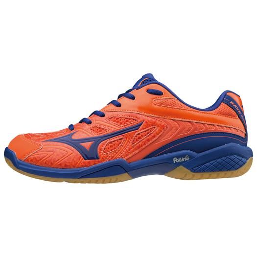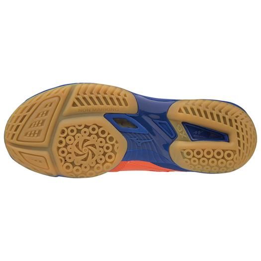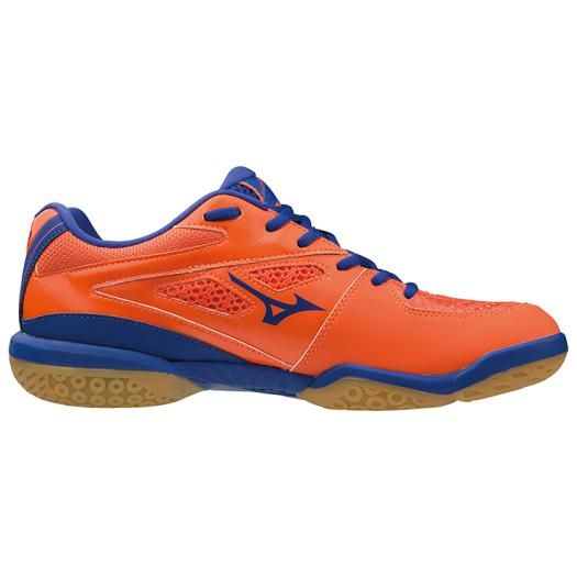 ミズノ(MIZUNO) バドミントンシューズ ウエーブファング SS2 品番:71GA171055 カラー:55:オレンジ×ブルー サイズ:23.0〜28.5cm 素材 甲材:人工皮革・合成繊維 底材:合成底 質量:約310g(27.0cm片方) インソール マイルドクッションインソール(取り外し可) ノンマーキングソール 幅:3E相当 原産国 : ベトナム製