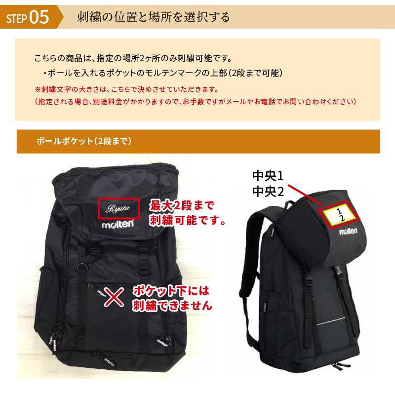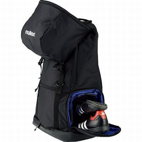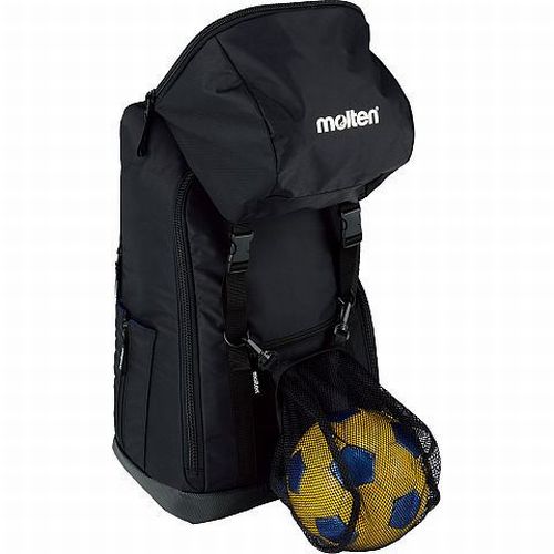 モルテン(molten) バックパック サッカー用 40L 品番:LF0013 カラー:黒 素材:ナイロン サイズ:幅35×高さ54×奥行20cm 40リットル容量(ボール収納部を除く) ボール収容ネット付き ボール(5号)2個、スパイク(28cmまで)、シンガード、ウェアが収納可 中国製