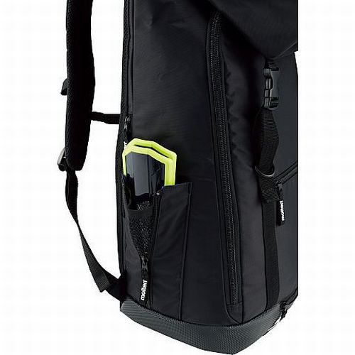 上部と前面ネットにボール2個収納可能(5号まで)、下部にシューズ収納スペース(28cmまで) 底部は水が染み込みにくいコーティング素材を採用。 ボールとスパイク収納部のインナーが取り外しできます。