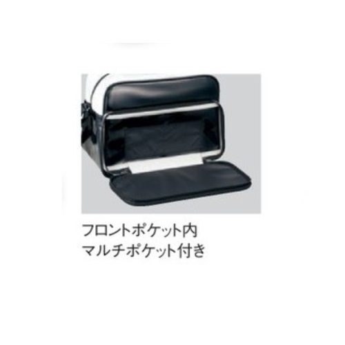 品番:BA563 カラー:2511(ロイヤルブルー×ホワイト) 素材:合成皮革(PVCエナメル) サイズ:長さ45×高さ34×巾25cm 容量:約42L(本体約38L+ポケット約4L) 前ポケットサイズ:縦22×横45cm 詳細:フロントポケット前面生地取り外し式、 フロントポケット内マルチポケット付き、背面内仕切りポケット付き 原産国:ベトナム