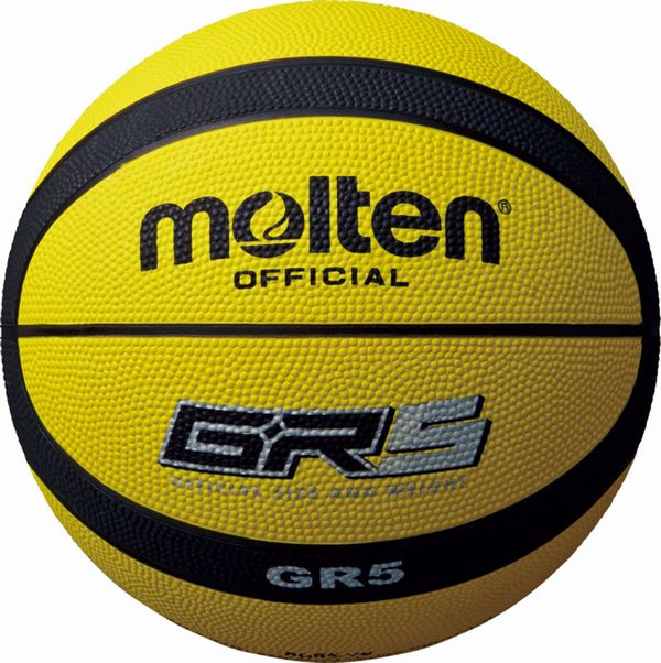 モルテン(molten) ゴムバスケットボール5号球 GR5 品番:BGR5-YK カラー:イエロー×ブラック 素材:ゴム サイズ:円周69〜71cm、直径約22cm 対象:小学校用 仕様:登録意匠済 原産国:タイ製