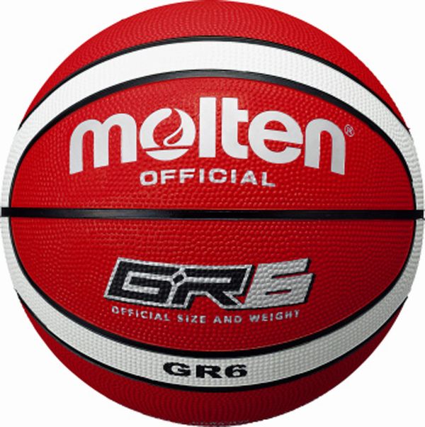 モルテン(molten) ゴムバスケットボール6号球 GR6 品番:BGR6-RW カラー:レッド×ホワイト 素材:ゴム サイズ:円周72.4〜73.7cm、直径約23.2cm 対象:一般・大学・高校・中学 女子用 仕様:登録意匠済 原産国:タイ製
