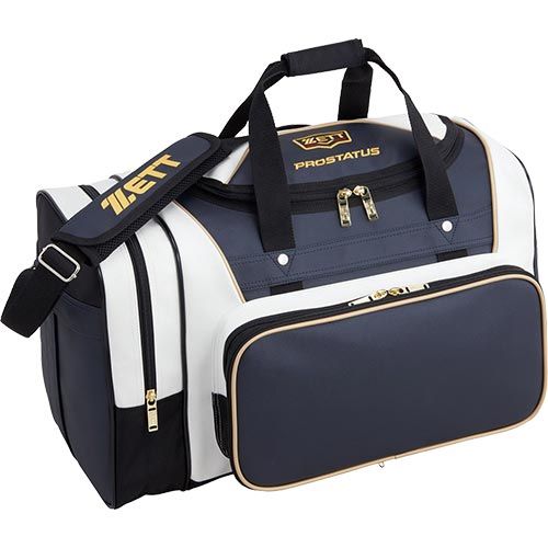 ゼット(ZETT) プロステイタス ミドルバッグ 品番:BAP617 カラー:ダークネイビー×ホワイト(3011) 素材:合成皮革(PVC)、底部・背面/1680Dナイロン サイズ:高さ55×高さ33×巾26cm 容量:約51L(本体/約40L+ポケット/約11L) 機能・特徴 ・フロントポケット前面生地取り外し式(縦20×横38cm) ・フロントポケット内マルチポケット付き ・左サイドポケット付き ・本体内側右仕切りポケット付き 原産国:中国