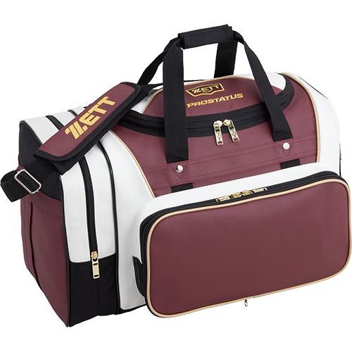 ゼット(ZETT) プロステイタス ミドルバッグ 品番:BAP617 カラー:エンジII×ホワイト(6011) 素材:合成皮革(PVC)、底部・背面/1680Dナイロン サイズ:高さ55×高さ33×巾26cm 容量:約51L(本体/約40L+ポケット/約11L) 機能・特徴 ・フロントポケット前面生地取り外し式(縦20×横38cm) ・フロントポケット内マルチポケット付き ・左サイドポケット付き ・本体内側右仕切りポケット付き 原産国:中国