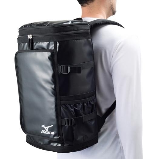 ミズノ(MIZUNO) バックパック ターポリンバックパック30 品番:33JD653009 カラー:ブラック(09) サイズ:L30×W19×H47cm 素材:Tポリウレタンターポリン・ポリエステル 容量:約30L 原産国:中国製