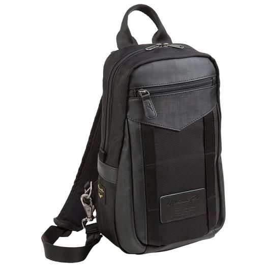 ミズノ(MIZUNO) ミズノプロ ボディバッグPTY 品番:1FJD940709 カラー:09:ブラック サイズ:L17×W9×H34cm 素材:ナイロン(裏加工PU)・合成皮革(PU)・付属牛革 容量:約6L 原産国:ベトナム製