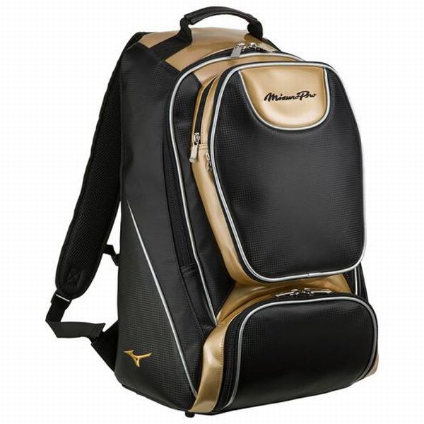 ミズノ(MIZUNO) ミズノプロ バックパック 品番:1FJD940990 カラー:90:ブラック×ゴールド サイズ:L34×W21×H54cm 素材:人工皮革(PU) 容量:約40L 原産国:中国製