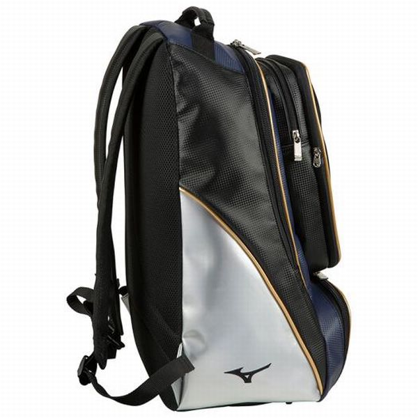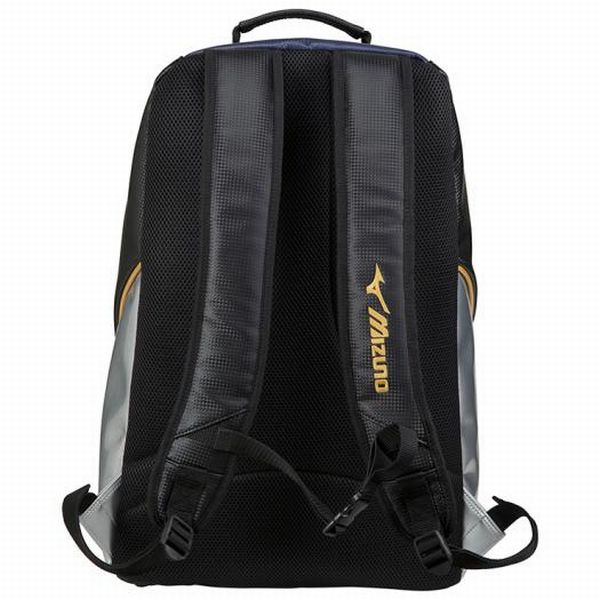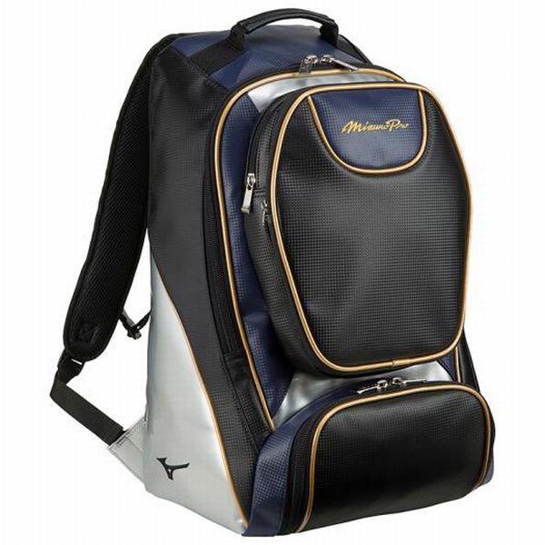 ミズノ(MIZUNO) ミズノプロ バックパック 品番:1FJD940991 カラー:91:ブラック×パステルネイビー サイズ:L34×W21×H54cm 素材:人工皮革(PU) 容量:約40L 原産国:中国製