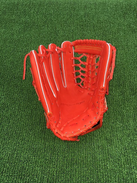 品番:PEK87519 カラー:33(レディッシュオレンジ) 素材:天然皮革製(ナチュラルレザーWV) 左右:左投げ ポジション:外野手用 レングス:8L ウェブ:ロケットネット3 付属品:専用袋付き 生産国:日本製